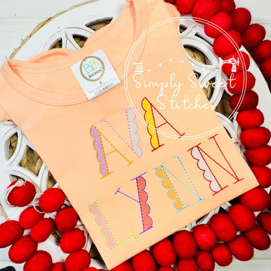 1715 - GIRLS SCALLOPED NAME BRIGHT COLORS - SKETCH CHILD SHIRT