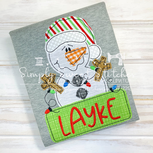 1862 - BOY SNOWMAN WITH NAME BOX - APPLIQUE CHILD SHIRT