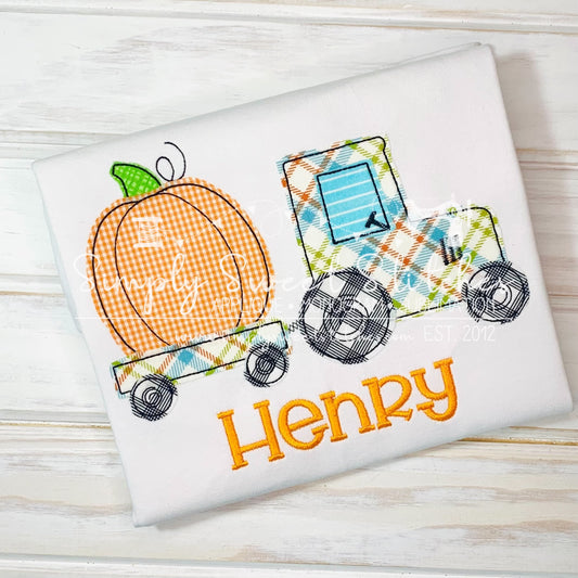 1828 - TRACTOR WITH PUMPKIN - APPLIQUE CHILD SHIRT