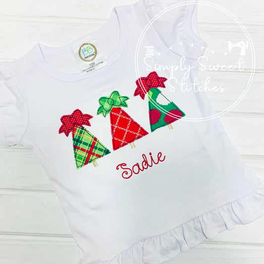 1842 - CHRISTMAS TREE WITH BOWS TRIO - APPLIQUE CHILD SHIRT