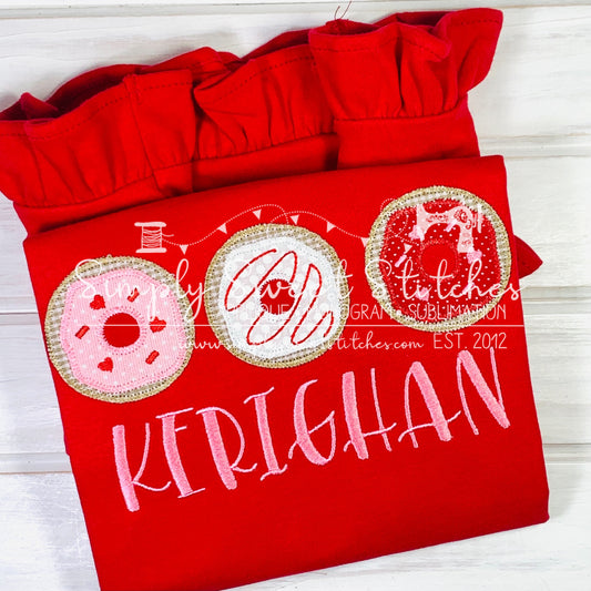 1921 - HEART AND DOUGHNUTS TRIO - APPLIQUE CHILD SHIRT