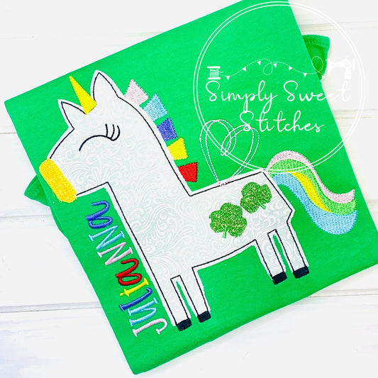 2241 - ST PATRICKS DAY UNICORN - APPLIQUE CHILD SHIRT
