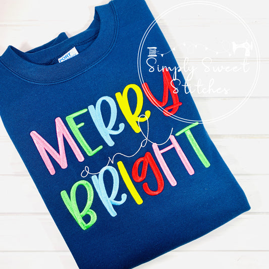 2168 - MERRY AND BRIGHT - EMBROIDERY ADULT SWEATSHIRT