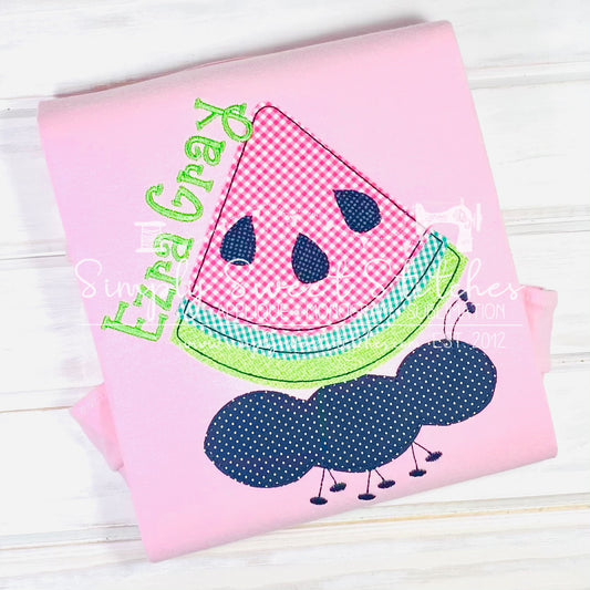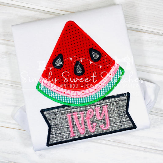 2000 - SATIN STITCH WATERMELON SLICE WITH NAME BOX - APPLIQUE CHILD SHIRT