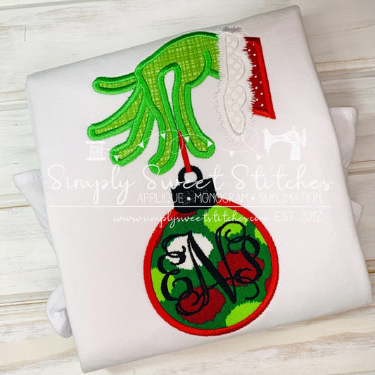 1912 - GRINCH HAND MONOGRAM - APPLIQUE CHILD SHIRT