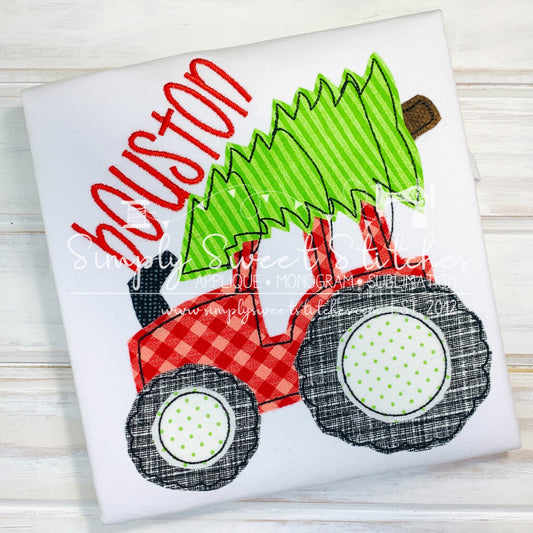 1876 - CHRISTMAS TRACTOR - APPLIQUE CHILD SHIRT