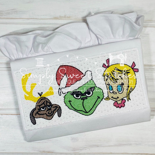 1906 - GRINCH TRIO FAUX SMOCKED - SKETCH CHILD SHIRT