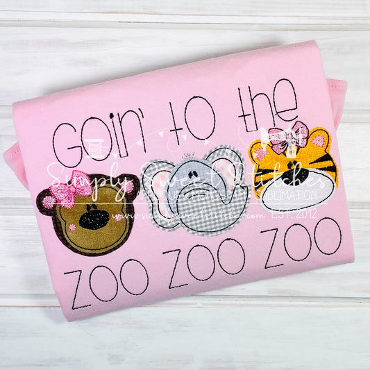 1584 - GOIN TO THE ZOO ANIMALS TRIO - APPLIQUE CHILD SHIRT