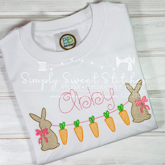 1539 - EASTER WAGON WITH BUNNY AND CARROTS - APPLIQUE CHILD SHIRT