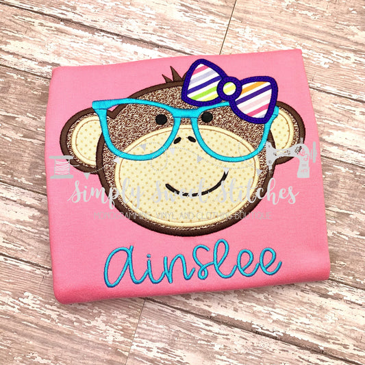 1017 - GIRLY MONKEY WITH GLASSES - APPLIQUE CHILD SHIRT