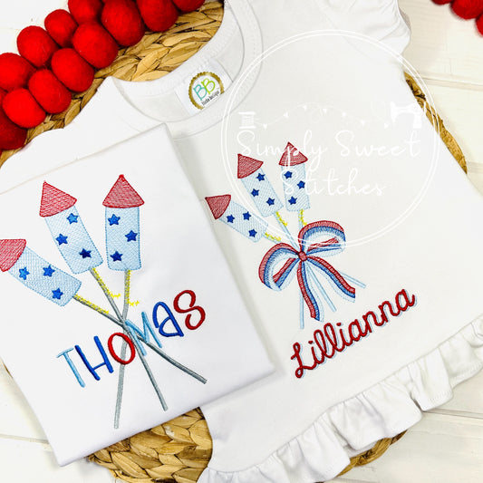 2328 - FIREWORKS TRIO WITH BOW - SKETCH CHILD SHIRT