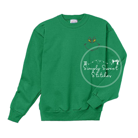 2386 - RESTING GRINCH FACE POCKET - EMBROIDERY ADULT SWEATSHIRT