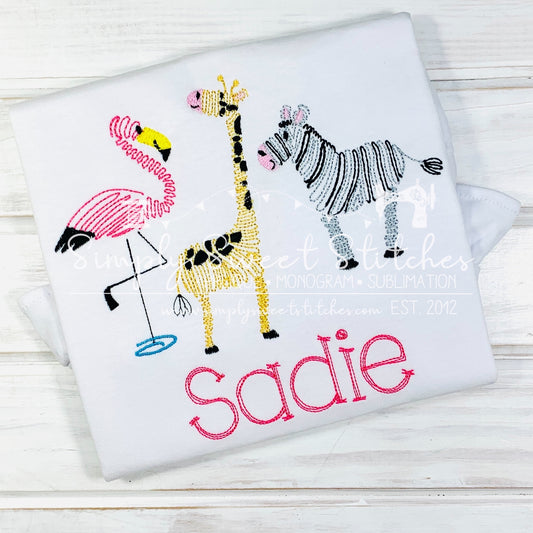 1596 - SWIRLY ZOO FLAMINGO GIRAFFE ZEBRA - SKETCH CHILD SHIRTRegular price $28.00 USDRegular priceUnit price / per-