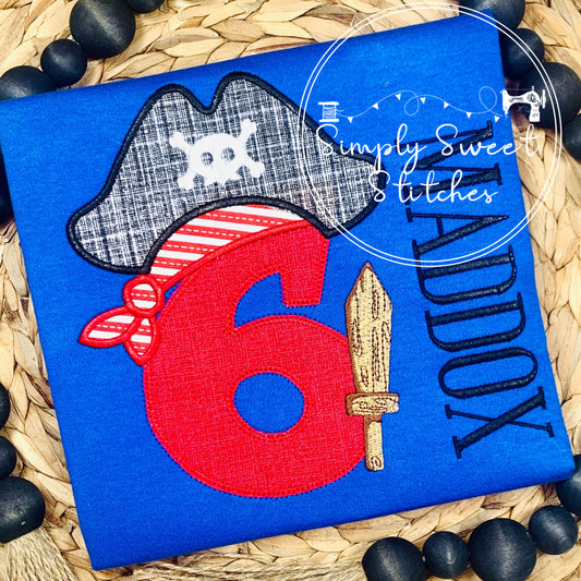 1078 - PIRATE HAT NUMBER BIRTHDAY - APPLIQUE CHILD SHIRT