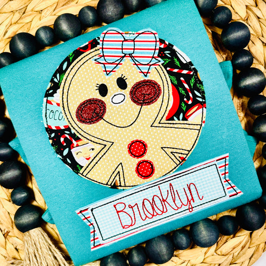 2423 - GINGERBREAD CIRCLE GIRL - APPLIQUE CHILD SHIRT