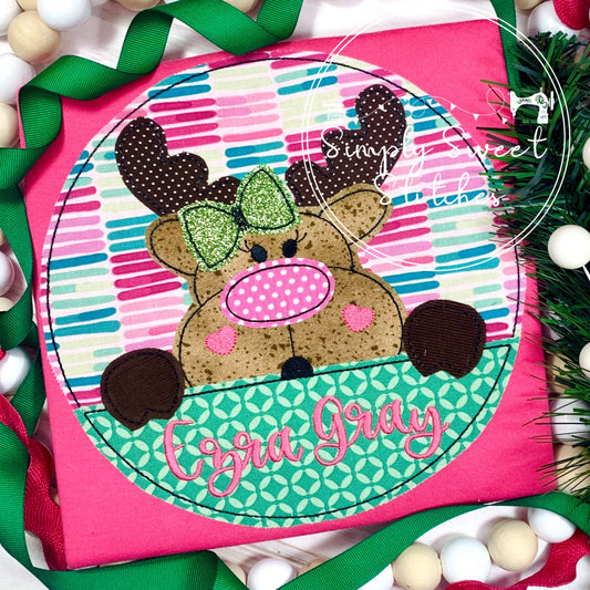 2187 - GIRL REINDEER PEEKER - APPLIQUE CHILD SHIRT