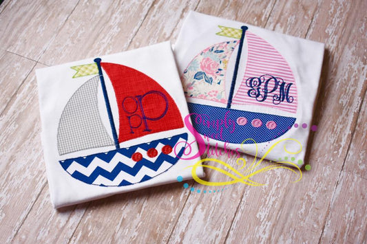 1050 - GIRL SAILBOAT - APPLIQUE CHILD SHIRT