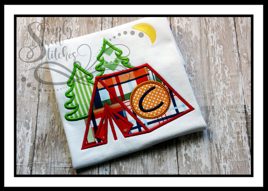 1026 - CAMPING TENT WITH INTITIALS - APPLIQUE CHILD SHIRT