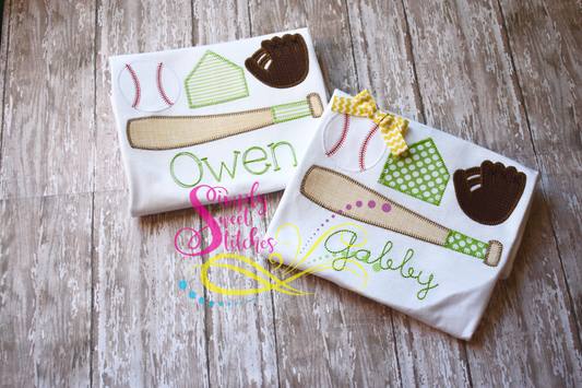 1080 - GIRLY BASEBALL TRIO - APPLIQUE CHILD SHIRT