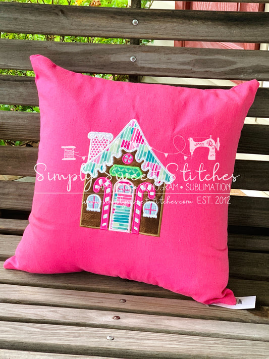 2069 - GINGERBREAD HOUSE APPLIQUE THROW PILLOW 18 IN x 18 IN - PILLOWCASE