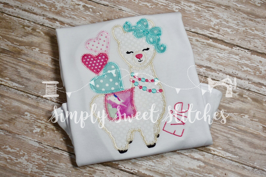 1324 - VALENTINE'S DAY LLAMA LOVE - APPLIQUE CHILD SHIRT