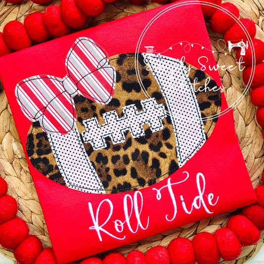 1844 - FOOTBALL WITH BOW - APPLIQUE CHILD SHIRT