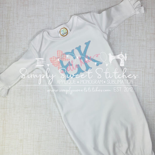 1764 - APPLIQUE INITIALS WITH BOW - APPLIQUE BABY GOWN