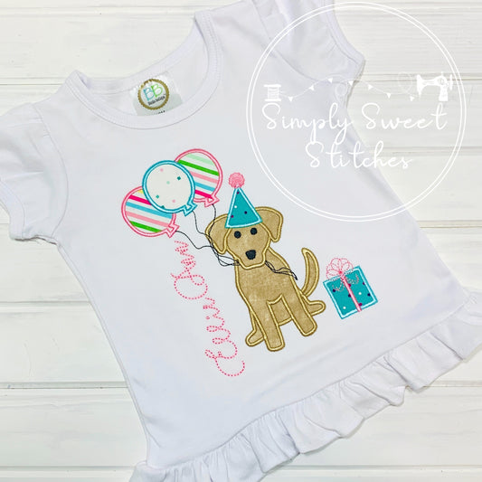 1600 - BIRTHDAY PUPPY DOG WITH BALLOONS NUMBER - APPLIQUE CHILD SHIRT