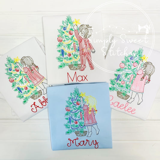 1217 - GIRL PUTTING STAR ON TREE - SKETCH CHILD SHIRT