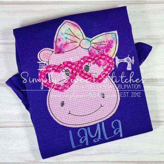 1266 - VALENTINES GIRL HIPPO - APPLIQUE CHILD SHIRT