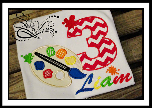 1079 - PAINT PARTY BIRTHDAY NUMBER - APPLIQUE CHILD SHIRT