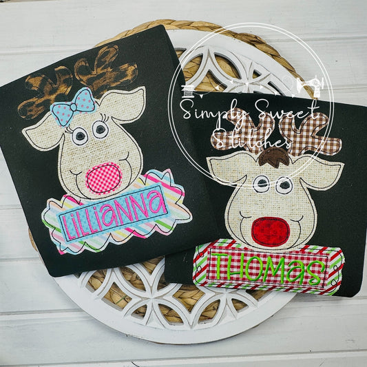 2598 - GIRL REINDEER WITH NAME - APPLIQUE CHILD SHIRT