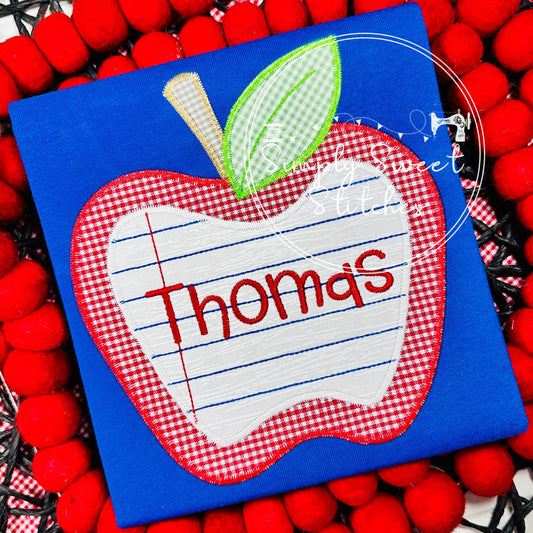 2554 - NOTEBOOK PAPER APPLE WITH NAME - APPLIQUE CHILD SHIRT