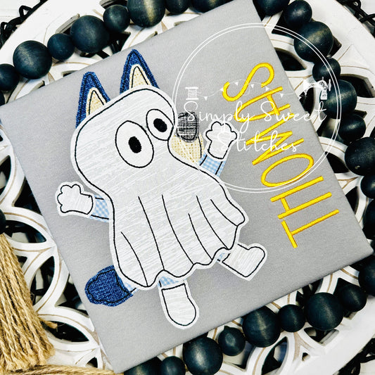 2577 - CUTESY GHOST WITH BOW - APPLIQUE CHILD SHIRT