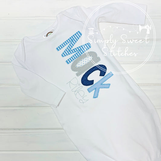 1029 - BOY NAME - APPLIQUE BABY GOWN
