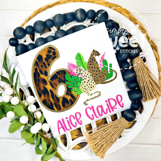 2750 - CHEETAH BIRTHDAY NUMBER - APPLIQUE CHILD SHIRT