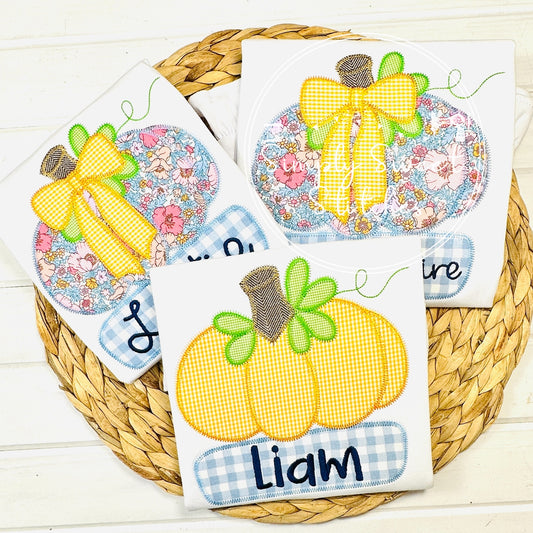 2600 - PUMPKIN WITH FANCY BOW - APPLIQUE CHILD SHIRT