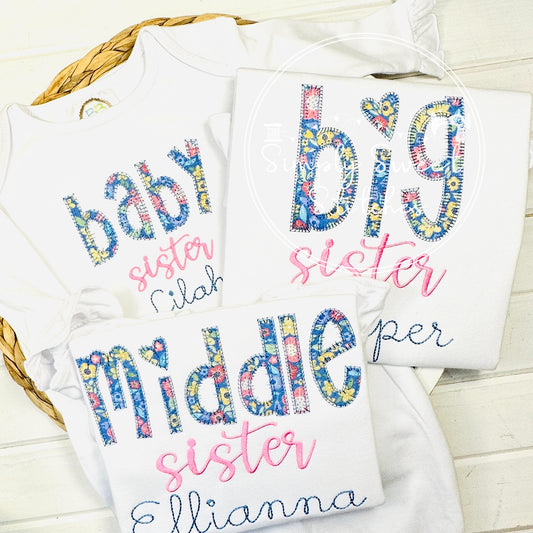 2613 - MIDDLE SISTER SCRIPT - APPLIQUE CHILD SHIRT