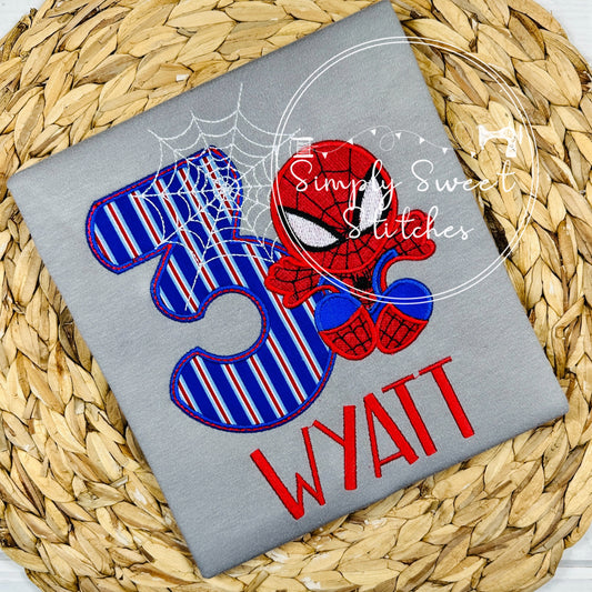 2462 - SPIDERMAN NUMBER BIRTHDAY - APPLIQUE CHILD SHIRT