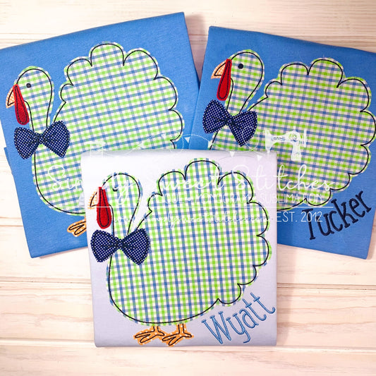 1829 - TURKEY WITH BOW TIE - APPLIQUE CHILD SHIRTRegular price $28.00 USDRegular priceUnit price / per-