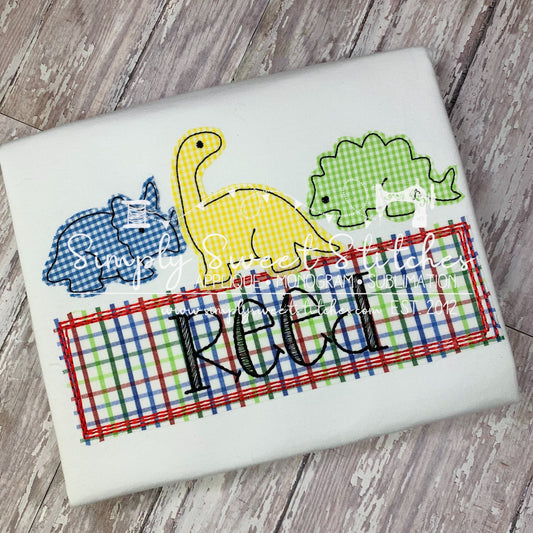 1648 - DINOSAUR TRIO - APPLIQUE CHILD SHIRT