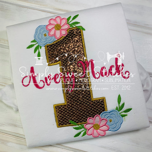 1647 - FLORAL BIRTHDAY NUMBER - APPLIQUE CHILD SHIRT