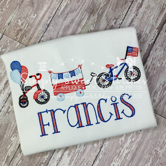 1611 - PATRIOTIC TRICYCLE WAGON TRIO - SKETCH CHILD SHIRT