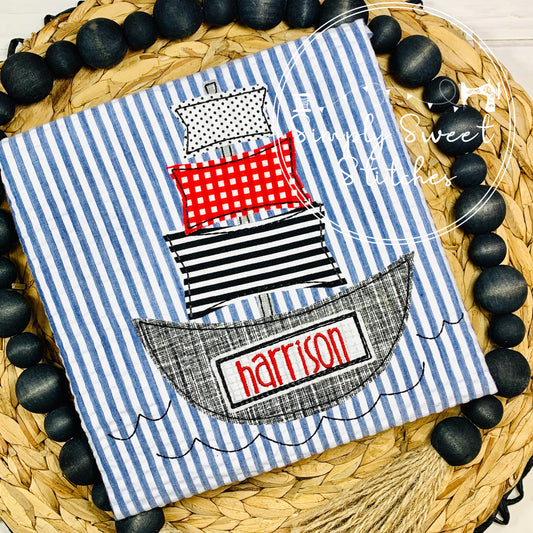 1573 - PIRATE SHIP - APPLIQUE CHILD SHIRT