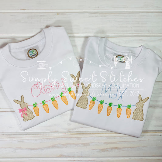 1539 - EASTER WAGON WITH BUNNY AND CARROTS - APPLIQUE CHILD SHIRT