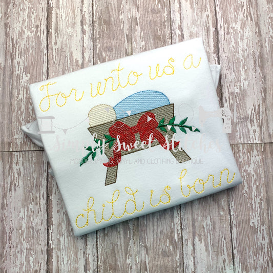 1260 - FOR UNTO US A CHILD IS BORN WITH BOW - SKETCH CHILD SHIRT