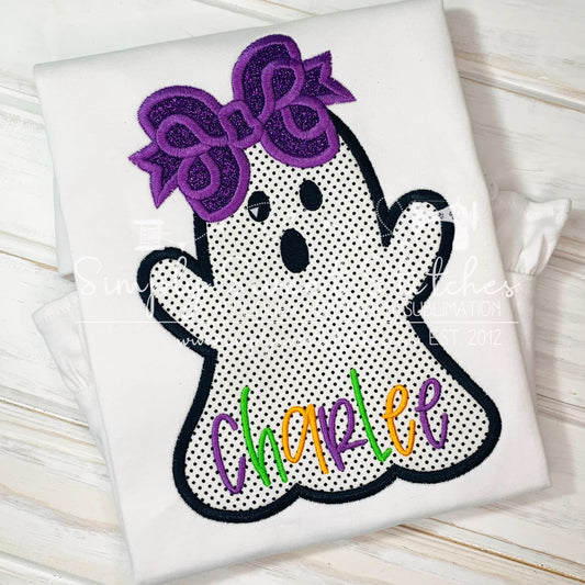 1256 - GHOST GIRL WITH BOW - APPLIQUE CHILD SHIRT