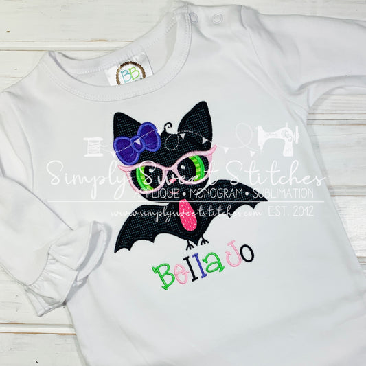 1255 - GIRL BAT WITH GLASSES - APPLIQUE CHILD SHIRT