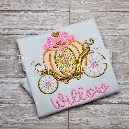 1189 - PUMPKIN CARRIAGE BIRTHDAY - APPLIQUE CHILD SHIRT