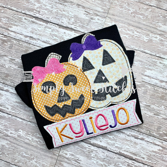 1197 - GIRL JACK-O-LANTERN PAIR - APPLIQUE CHILD SHIRT